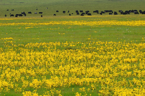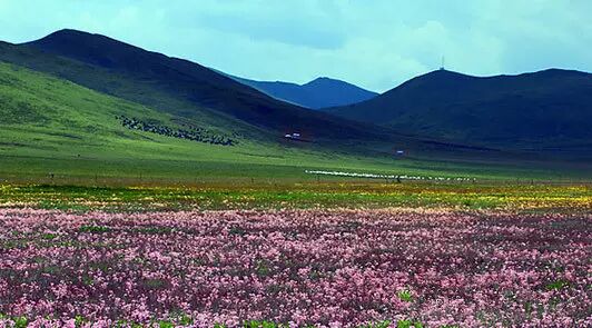 皑皑玉龙雪山下,色彩斑斓的高原海子和绚丽的花海相映,高山草甸上牧群游走,一年中最美的景色正默默上演。穿过香格里拉的花海,绝对是一次充满了惊奇发现的愉快旅程。6月去香格里拉,这时正是高山草原的夏季,在那一层绿色之上,满辅着一层黄的,白的,紫的,蓝的,粉红的小花。在清风的吹拂下,轻轻的点头,好像一张张可爱的小脸,完全陶醉在这花的海洋中。