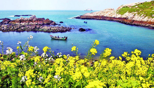 渔山岛给人的第一印象便是清新的空气,海水的颜色特别的漂亮,一片湛蓝色,令人心旷神怡。蔚蓝的天,湛蓝的海,把海岛掩映得更加美丽。其中以南渔山为最大,五虎礁雄踞海疆,系领海基线。从本岛看上去的五虎礁,是由从南而北的11座大小不一的岛礁组成。游人在岛上所见的五虎礁,潮高时其形状则如珠浮碧海,变得玲珑可爱,令游人一睹而终生难忘。