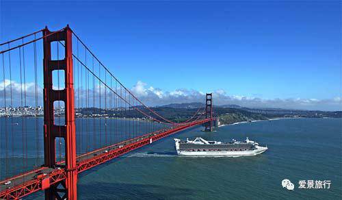 雄跨金门海峡的金门大桥于1937年建成, 长2. 7公里,从海面到桥中心部的高度约为67.84米, 两个主桥墩有65层楼高, 共用了2.4万吨钢缆, 耗资3550万美元。金门大桥气势宏伟、外形壮观、色调独特,被誉为近代桥梁工程的一项奇迹,是旧金山的象征。她是世界上最大的单孔吊桥之一,每天都约有10万辆汽车从桥上驶过。 金门大桥的设计者是工程师史特劳斯的铜像安放在桥畔,以纪念他的杰出贡献。