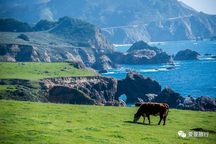 当我们沿着太平洋海岸从北向南行驶,离开艺术气息浓厚的卡梅尔小镇之后,就到达了绵延100多公里的大苏尔风景区。越向南开,空气愈发清新,人烟也越来越稀少。这里红杉茂密、迷雾缭绕、惊涛拍岸,没有明确的边界,没有城市的侵袭,没有俗气的广告牌,有的只是长满青草的悬崖、咆哮的大海和湛蓝的天空。行驶在这蜿蜒的山路上,两侧时而是巍峨险峻的高山,时而是浩瀚磅礴的海洋,时而是深不可测的峡谷,时而是遍布牛羊的草场。